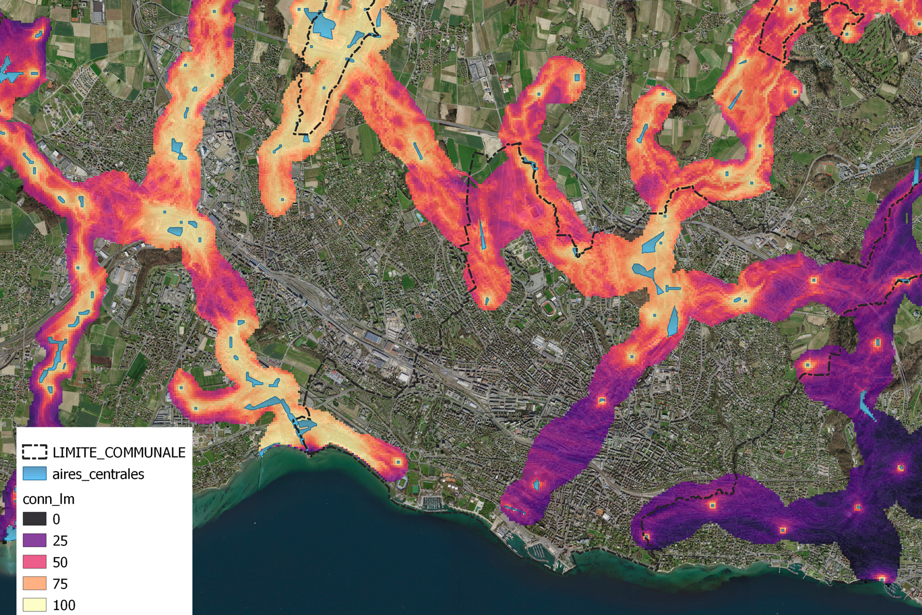 Ainsi, à la suite de modèles de connectivités écologiques développés par les chercheurs et un diagnostic des « motifs paysagers » de la ville de Lausanne, les potentiels discontinuités des corridors écologiques par grand types de milieux (humide, sec, boisée) ont pu être mis en évidence.