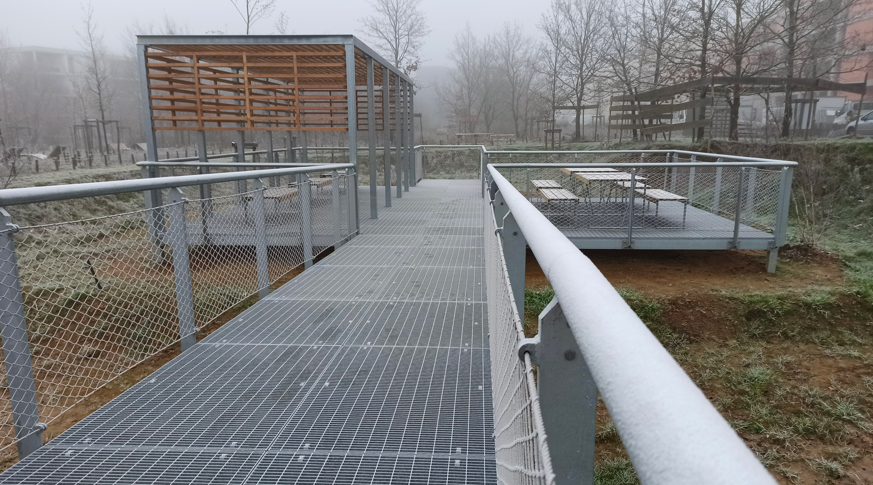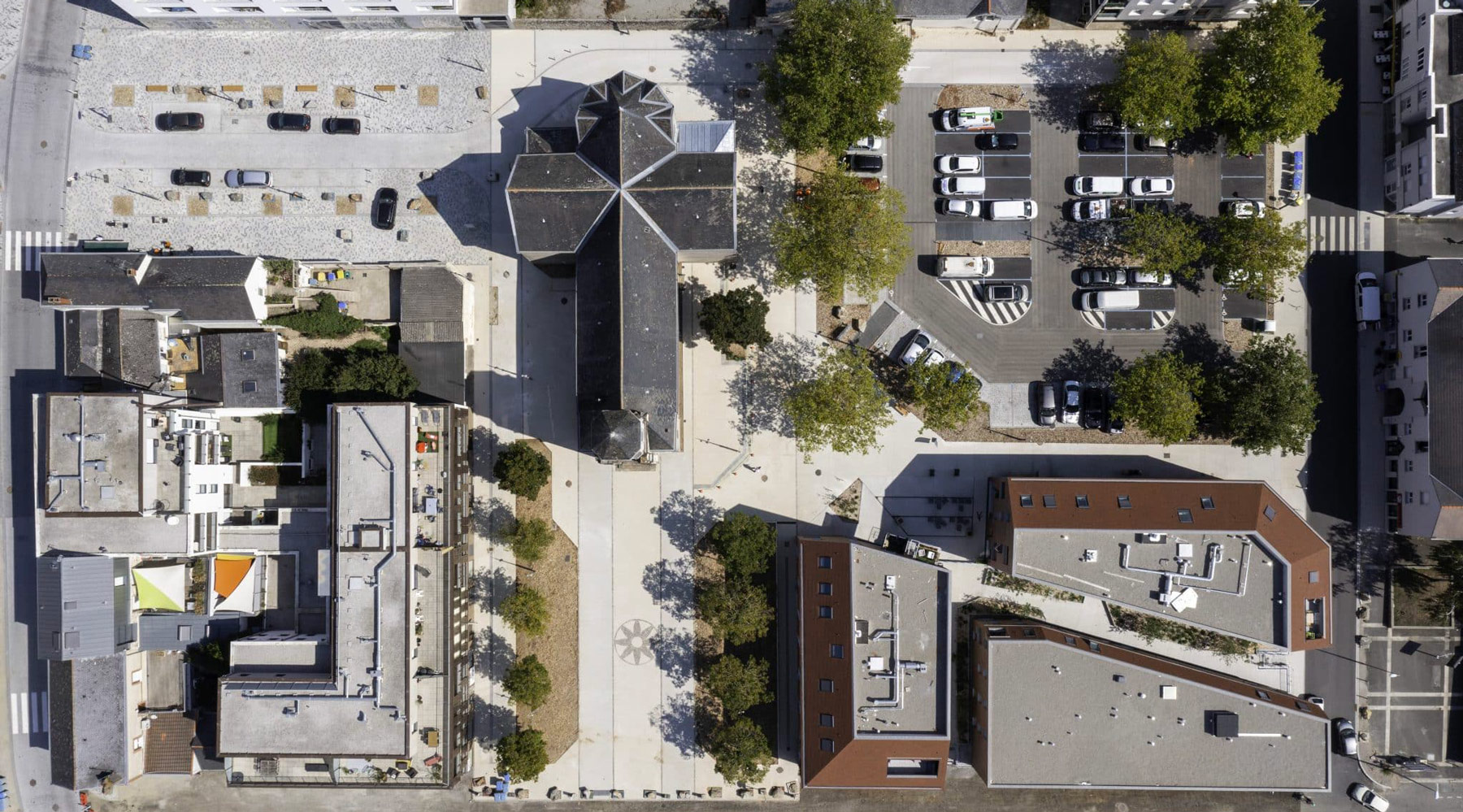 Enfin, notre équipe se charge de l’aménagement d’espaces publics majeurs qui renforceront la trame d’espaces publics existante. L’aménagement de la place des Tonneliers près de l’église dans le centre-bourg renouvellera les espaces commerciaux de Saint-Joseph-de-Porterie. Le parc du Bois du Hue et le square du Verger du Launay seront aménagés comme des espaces de proximité.