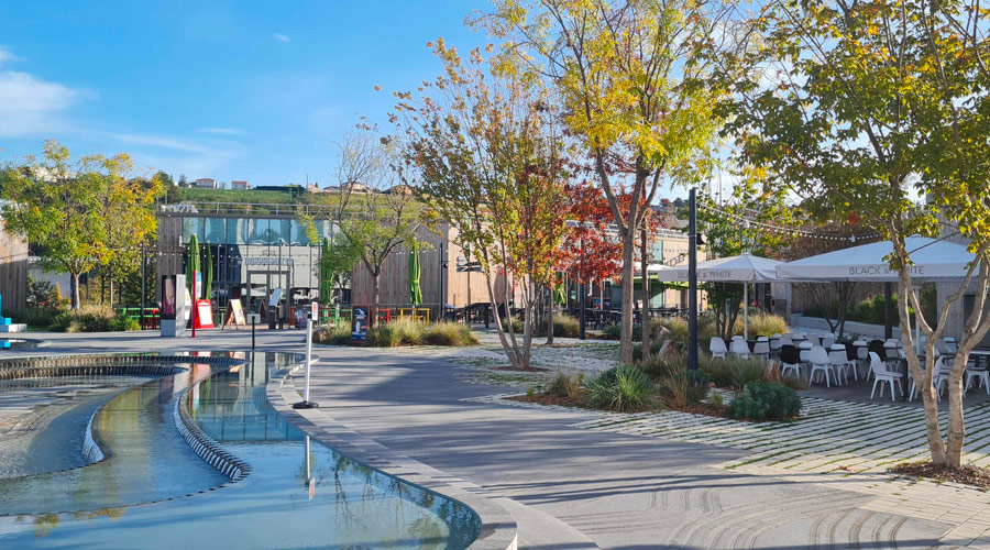 Cette diagonale est mise en place comme un lieu de diffusion, de rencontrer, d’extraction du paysage commercial, un lieu à pratiquer différemment suivant les saisons, suivant son âge et ses envies. Cette nervure verte irriguera l’ensemble du cœur commerçant, en lui apportant son paysage apaisant.